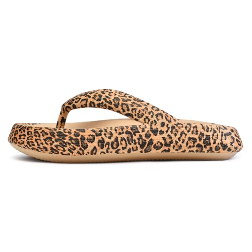 Leopard Print Flip Flops for Women & Men, EVA Soft Cloud Pillow Sandals, Non-Slip Platform Slippers, Cushioned Thong Slides for Indoor & Outdoor, Large Size ,Khaki, Gray, Pink, and Black 6