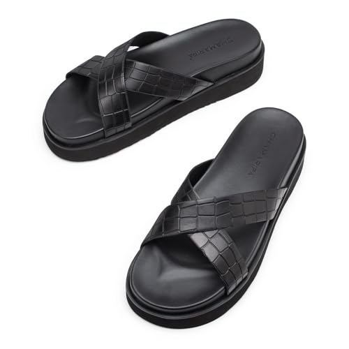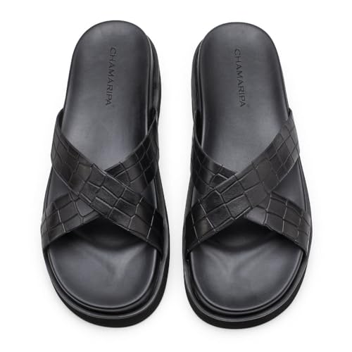 • Design - Styled in a sleek black, leather sandals from Chamaripa will perfectly complement your relaxed everyday looks. The black soft and breathable black upper made from cowhide leather, the slip-on style fitted with a molded footbed for supremely comfortable wear and PU sole unit for a cushioning finish. A trendy and chic accessory that will increase your height by 5CM / 1.97 Inches even at the beach or by the pool.