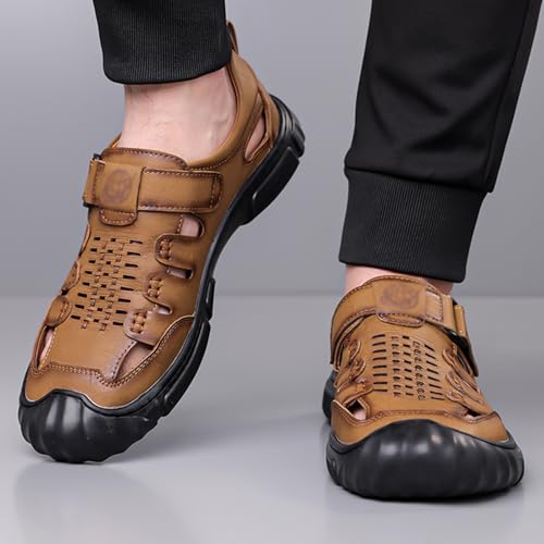 Men's Sandals Leather Closed Toe Beach Shoes Adjustable Lightweight Comfort Breathable Comfortable Outdoor Hiking Water Beach Sports Sandals 6