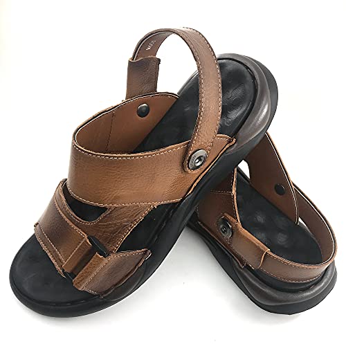 ZLUXURQ Mens leather sandals summer outdoor sports hiking beach leisure slippers 6