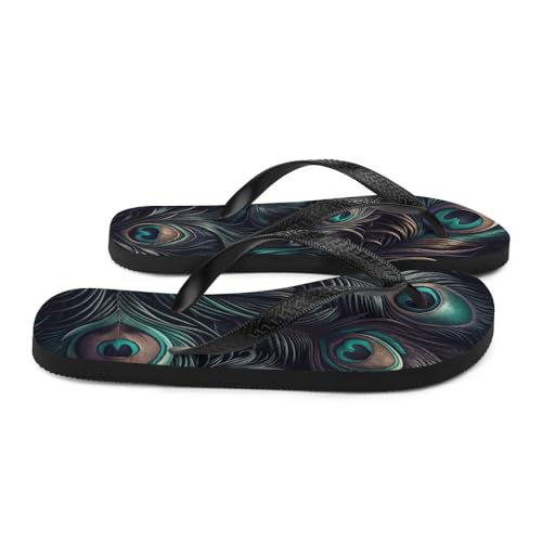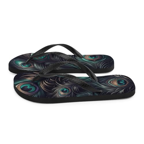 HOT ! Women's Dark Peacock Feather - Lightweight Comfy Soft Sole Flip Flop Sandals