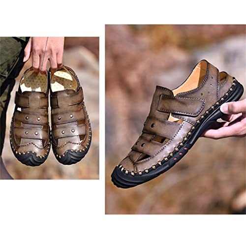 HOT ! Sandals for Men Leather Adult Outdoor Hiking Beach Flat Slip Comfortable Breathable Soft(38)