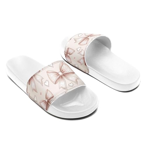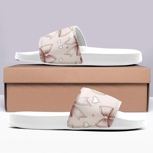 Trendy Preppy Aesthetic Slide Sandals for Women, Comfortable Stylish Bow Print Design Girls Beach Outdoor Slippers 6