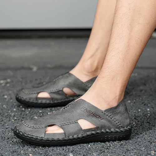 More information about Men's Hollow Leather Closed Toe Casual Flat Sandals Outdoor Athletic Handmade Slip On Beach Shoes Summer Breathable Comfort Walking Sandals