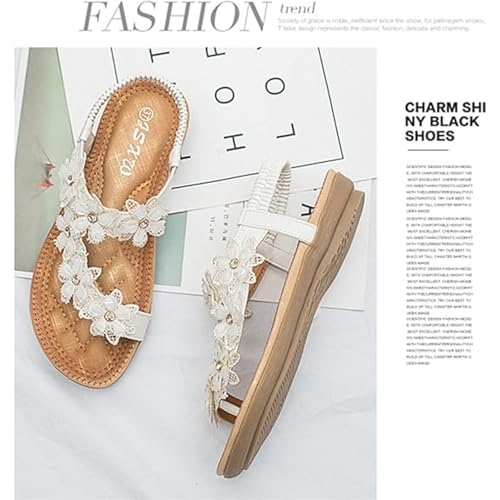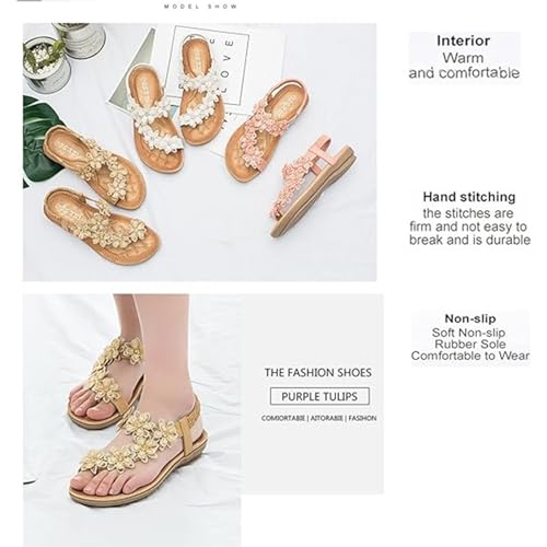 Ladies Flower Accessory Round Toe Thong Flat Beach Sandals, Comfy Soft Sole Slippers, Open Toe Sandal with Arch Support, for Girlfriends and Mother 7