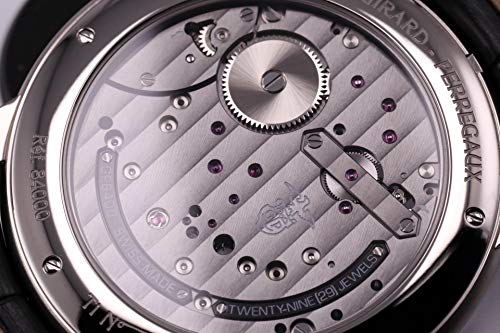 • Girard Perregaux Caliber GP08400, beats at 21,600 (3 Hz) vph, composed out of 208 parts, contains 29 Jewels & has an approximate power reserve of 48 hours