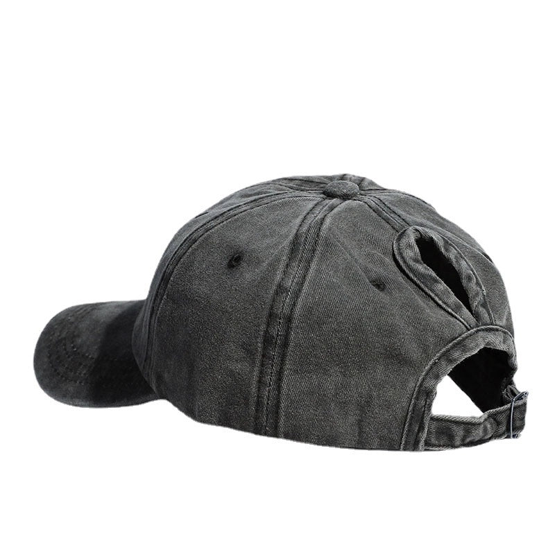 Baseball Cap Wash Cotton Curved Eaves Outdoor Sports Ladies Peaked Cap Ponytail Braid Cap Summer Sunscreen Hat 2