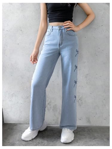More information about GORGLITTER Girl's Baggy Bow Jeans Wide Leg Loose Straight Leg Denim Pants Y2k with Pockets 8-12Y