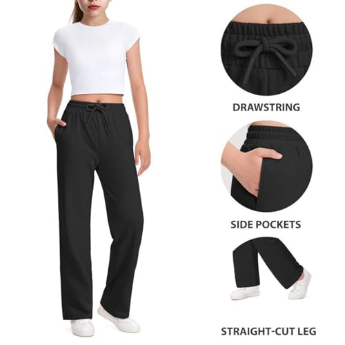 Kids Girls Straight Sweatpants Solid Color Elastic Waist Stretchy Athletic Pants Joggers Casual Loose Comfy Soft Trouser 5