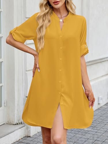 PerZeal Womens Sexy V Neck Button Down Shirt Dresses Summer Short Sleeve Casual Loose Blouses & Button-Down Shifts Cover Ups 3