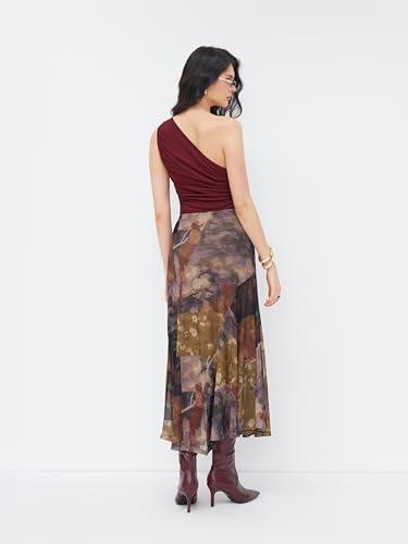 CIDER Skirts for Women Floral Print Mesh Maxi Skirt Abstract Graphic Asymmetrical Hem Mid Waist Long Skirt 4