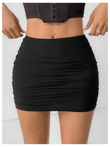 HOT ! SOLY HUX Women's Y2k Ruched Mini Skirt Mesh Elastic Waist Bodycon Skirts Going Out Outfit