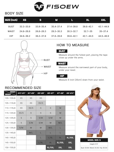 HOT ! Fisoew Women's Workout Tennis Dress with Built-in Bra & Shorts Pockets Sleeveless Crewneck Golf Athletic Mini Dresses