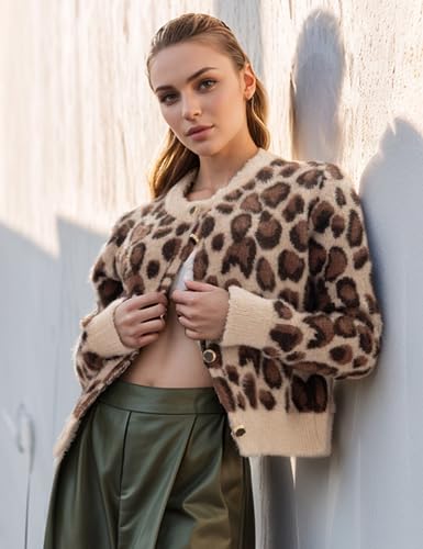 Arssm Womens Leopard Printed Cardigans 2024 Crewneck Printed Fluffy Sweaters Long Sleeve Fuzzy Sweater Knitwear 6