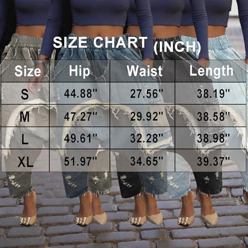HOT ! Women's Denim Harem Pants Elastic Waist Patchwork Jeans Ripped Hippie Cropped Denim Jogger Pants with Pockets