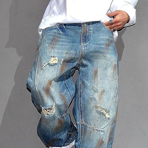 • Functional Details:Enjoy the classic pocket design complemented by a utility pocket.The button fly/zipper fly provides secure closure,while belt loops and rivets add an extra touch of style.The distressed look keeps you on-trend for modern fashion