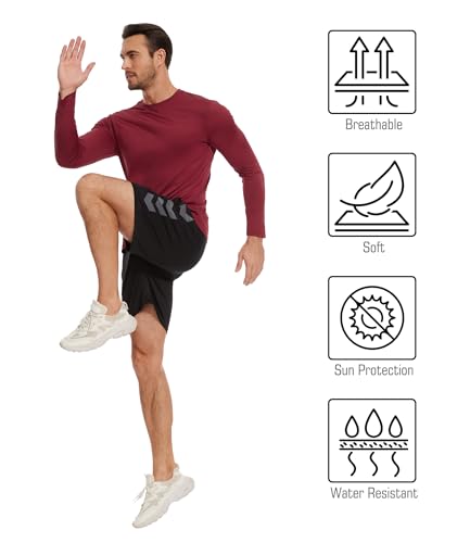 6/7 Pack Men Dry Fit Workout Long Sleeve Athletic Gym UPF SPF UV Sun Protection Quick Dry Lightweight Shirts 6