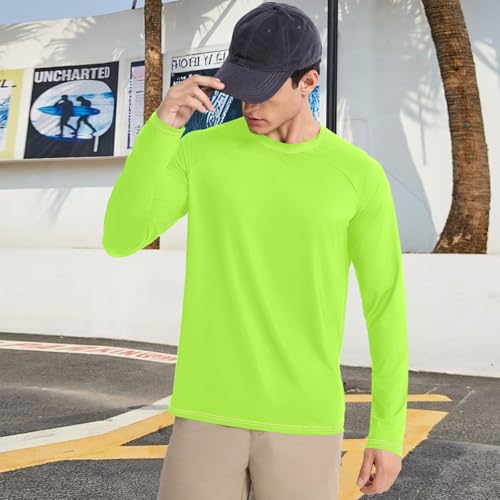 Green Yellow Shirts Summer UPF 50+ Lightweight Elasticity Mens Sun Protection Long Sleeve Water Fishing 4