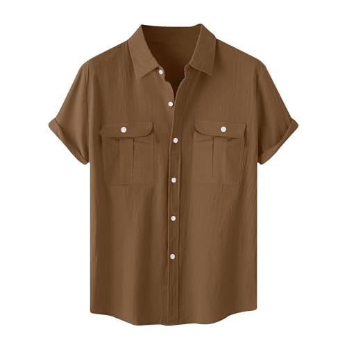 Linen Shirts for Men Western Short Sleeve Western Shirt Cowboy Casual Two Pockets Cotton Linen Stylish Work Shirts 7