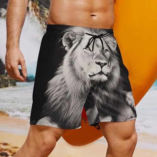 Black and White Liones Mens Swim Trunks with Quick-Drying Lining Beach Shorts for Outdoor Sports 7