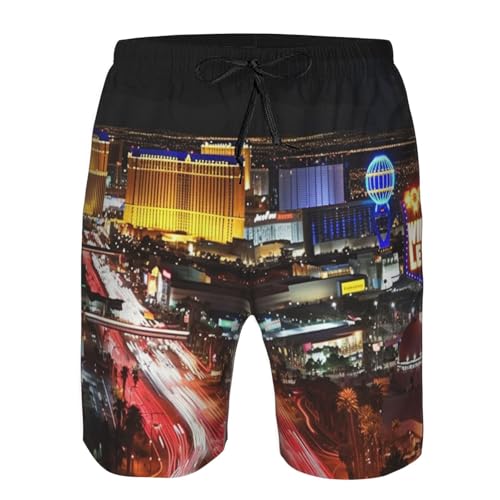 • Las Vegas Night City Printed Swim Trunks for Men: These surf shorts can be worn in and out of the water during summer vacation. Our Men's Sweat Shorts Swimsuits using dye-sublimation technology that allows graphics lifelike, vibrant colors and comfy material will bring you a cool summer