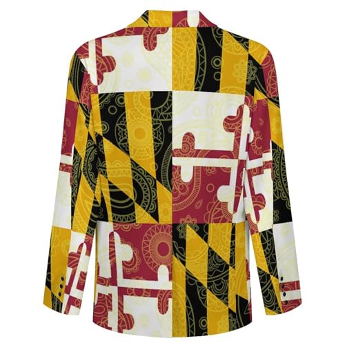 HOT ! Maryland State Flag Paisley Pattern Printed Men's Classic Fit Suits Funny Casual Stylish Two Button Blazer