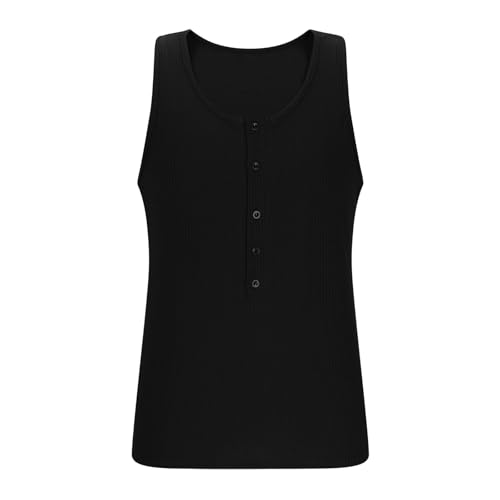 HOT ! Cambkatl Men's Button Up Henley Tank Top Sleeveless Ribbed Knit Summer Slim Fitted Muscle Tee Shirt