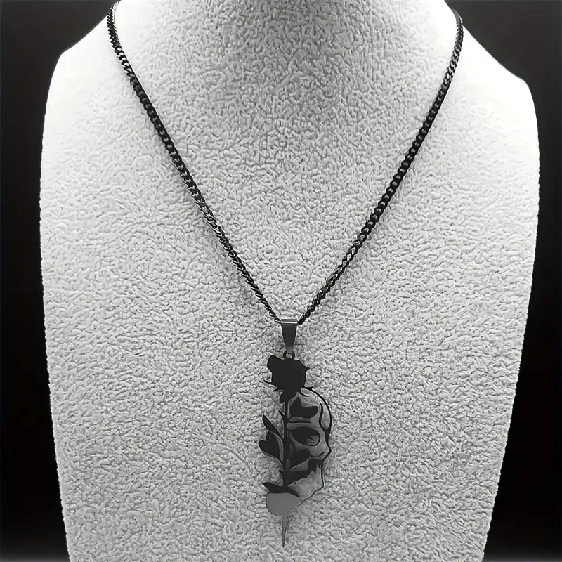 HOT ! Vintage Style Punk Rose Skull 304 Stainless Steel Vacuum Vapor Plating Black Halloween Unisex Pendant Necklace