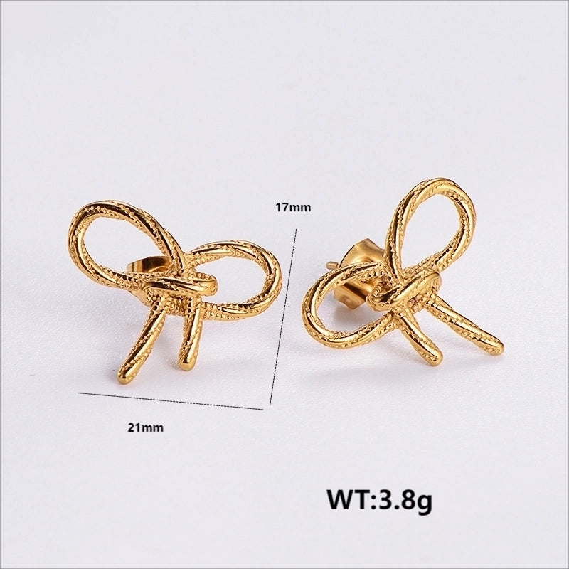 More information about 1 Pair Vintage Style Solid Color Bow Knot Plating 304 Stainless Steel 18K Gold Plated Ear Studs
