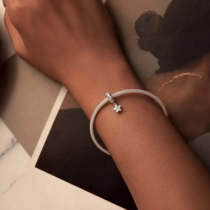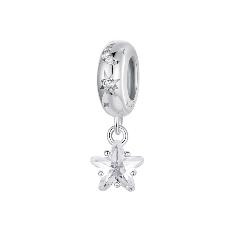 Aifule Simple Star Five-Pointed Star Silicone Spacer Beads S925 Sterling Silver White Gold Plated DIY Bead String Jewelry Beads 4