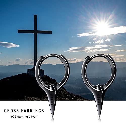 Spike Earrings 925 Sterling Silver Sword Cross Huggie Hoop Earrings Small Dagger Spike Dangle Drop Hoop Earrings Punk Jewelry Earrings for Women Men 4