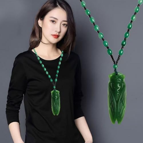 Cicada Necklace Handmade Bug Necklace Vintage Dark Green Lucky Amulet Crystal Cicada Necklace Men and Women Amulet Gift 7