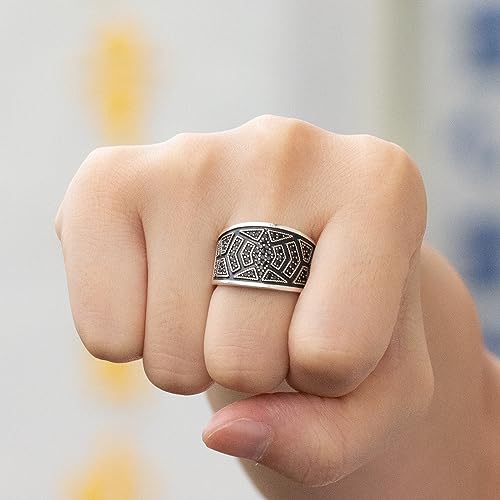 • ❤【Super Cool Design】-Fine workmanship, The surface is hand carved with black small diamonds can highlight the fashion and beauty of the ring. It symbolizes peace and loyalty.This Sterling Silver Ring for Men has a Carefully Selected Natural Gemstone and Come with High end Special Jewelry Velvet Bag. It will definitely be among his favorite accessories.