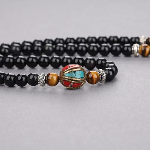 COAI Tiger Eye and Obsidian Malas Prayer Beads Bracelet 5