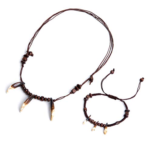 HOT ! Unisex Adjustable Buffalo Bone Tooth Necklace - Indian Tribe Prayer Prehistoric Necklace(Include Teeth Bracelet)