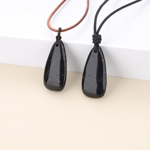 COAI Black Tourmaline Necklace for Men Women, Teardrop Pendant Adjustable Nylon Cord/Genuine Leather Necklace for Men Women 1