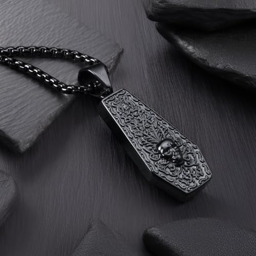 • Super Cool Design: The perfect combination of skull, Cross and Gothicelements. This coffin pendant is the perfect choice for those who seek individuality and a unique style; it can serve as an expression of personal taste and style.