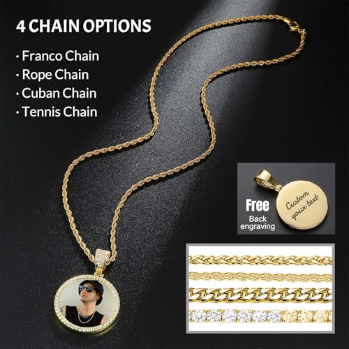 • 💎High Quality Material: The pendant necklace with picture is made of high quality copper material and AAA+ zircon, which is colorfast, non-sensitive and harmless to skin. Each picture necklace is custom-made, designed and handcrafted using high-quality materials by a team of expert artisans. You can also choose to hang this custom iced out pendant as a charm on your bag shines in the sun.