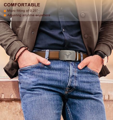 BULLIANT Men belt 2Pack,Leather Ratchet Belt for Gift Men Dress Casual Jeans 1 3/8",Cut for Fit 3
