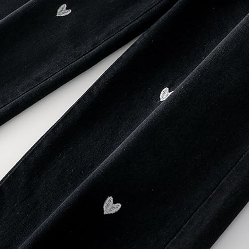Moonker Girls Baggy Jeans Cute Heart Embroidery Straight Wide Leg Denim Pants Loose Palazzo High Elastic Waist 6