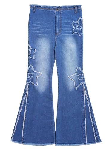 • Mid waist jeans with star pattern, frayed raw hem and bell-bottom design make your girl look both cute and stylish