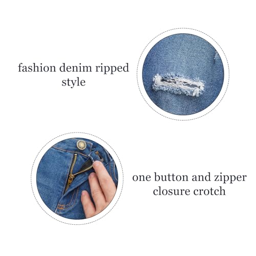• The pants features with one button and zipper closure crotch, fashion denim ripped style, tassel hem, bell-bottom style