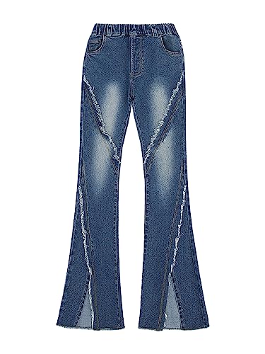 JanJean Girls Kids Straight Ripped Split Hem Bell Bottom Jeans Youth High Waist Wide Leg Flare Denim Pants 4
