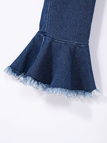 JanJean Kids Girls Stretchy Slim Fit Bell Bottom Denim Pants Frill Ruffle Hem Legging Pants Casual Flared Jeans Trousers 6
