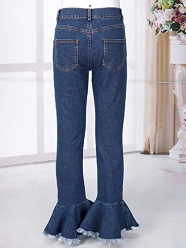 Kids Girls Denim Bell-Bottoms Pants Button Closure Distressed Slim Flared Jeans with Pockets Casual Wear 7