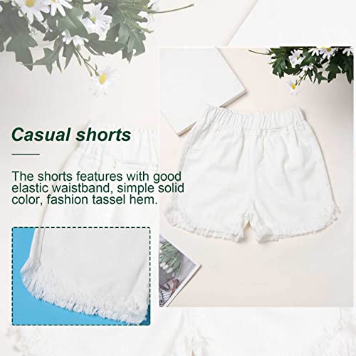 Linjinx Girls Kids Summer Loose Fit Tassel Hem Frayed Raw Hem Denim Pants for Hiking Jogging Dancing Tumbling 6