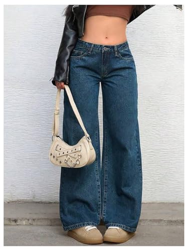 HOT ! GORGLITTER Girl's Baggy Jeans Low Waisted Wide Leg Casual Long Denim Pants with Pocket