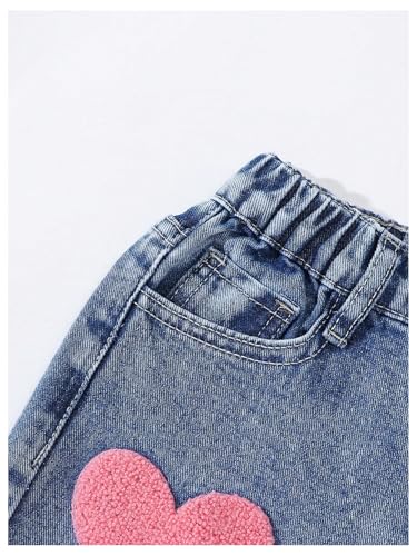 WDIRARA Girl's Star Heart Print Denim Pants Elastic Waist Straight Leg Jeans with Pockets 4