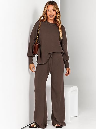 ANRABESS Womens 2 Piece Outfits Fall Lounge Set 2025 Oversized Chunky Knit Sweater Top Wide Leg Pants Loungewear Clothes 2