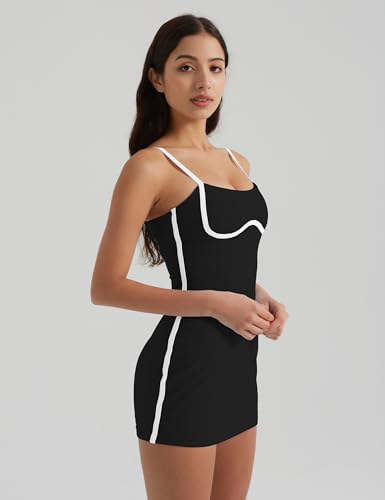 HOT ! Womens Tennis Dress with Built-in Bra & Shorts Pockets,Sleeveless Adjustable Spaghetti Strap Colorblock Golf Dresses